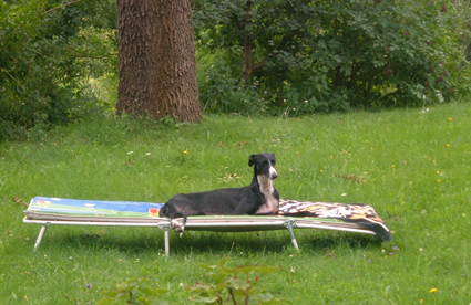 „hallo Sabine! Anbei sende ich dir Bilder – damit du siehst wie Lucy Mentaltraining macht (faul sein darf man ja nicht sagen oder? ;-)) Ich denke sie bereitet sich innerlich auf das Sommerfest vor. Ich werd mich nun dieser Beschäftigung anschliessen.“ Die Bilder werden größer, wenn sie angeklickt werden.
