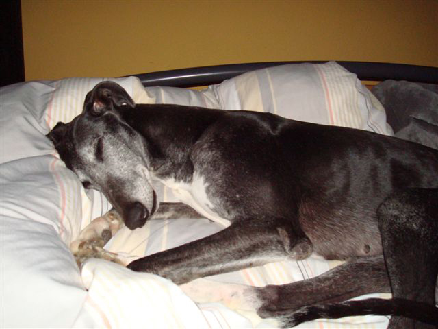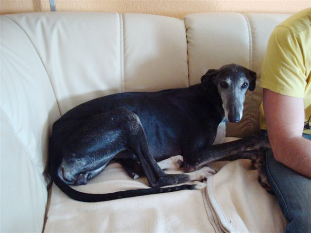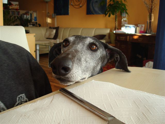 Was gibt’s noch zu berichten? Sie ist sehr lernwillig und kapiert auch ganz schnell: unglaublich, so ein g’scheiter Hund! Im Büro waren wir auch schon: war ihr anfangs unheimlich, aber dann hat sie sich ziemlich schnell auf ihre Decke gelegt und geschlafen: ihre Lieblingsbeschäftigung! Ja, und sonst bin nicht nur ich in sie verliebt, sondern alle – wirklich alle! – Menschen, die sie bisher kennen gelernt haben. Und Allegra liebt auch alle, besonders solche, die sich mit ihr auf ein Sofa setzten (muss gar nicht meines zu hause sein) und sie streicheln.