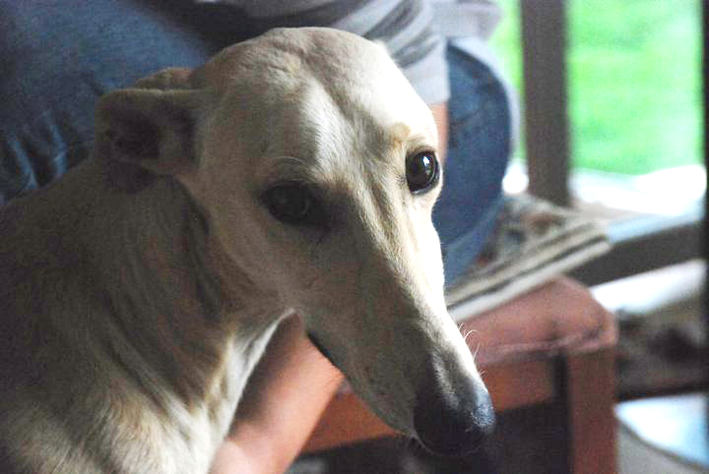 Die Raubtierfütterungen sind auch gar kein Problem, er isst ruhig und schlingt nicht. Er versucht anfangs noch zu stehlen, was man auch am Tisch merkt. Da hilft nur konzequentes auf die Seite schieben oder ihm während dem Essen auf einen Platz zu schicken. Sonst ist er ein totaler Schmuser der am liebsten rund um die Uhr bei seinen Menschen ist. Er geht einem überall nach und sobald man sich hinsetzt, schmust er sich auf die Bank dazu und legt einem seinen Kopf in den Schoß. Er ist ein ausgesprochen lieber, ruhiger und sehr rassetypischer Galgo, der jeden sofort in sein Herz schliesst.“