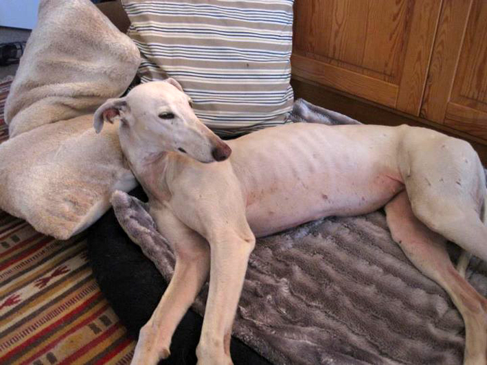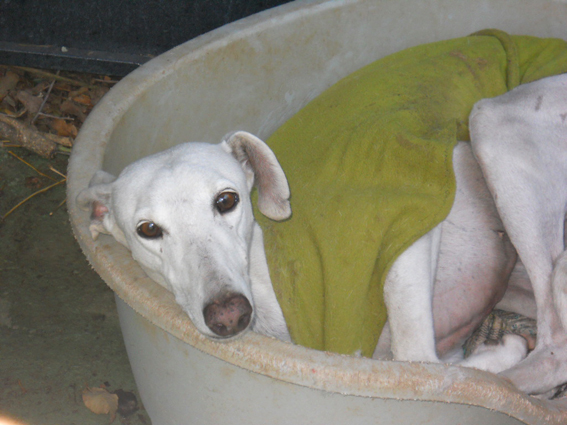 Nica hat aufgrund eines alten Traumatas einen nicht ausgebildeten rechten Schultermuskel. Das bereitet ihr zwar keine Schmerzen aber beeinträchtigt ihre Ausdauer. Nica sucht eine ruhige Familie, die auf ihr Handicap Rücksicht nimmt.  Alle Mittelmeerkrankheiten-Tests waren negativ! Sie ist kastriert, geimpft & gechipt, wird mit Schutzvertrag und gegen Schutzgebühr, über Galgo in Not vermittelt.