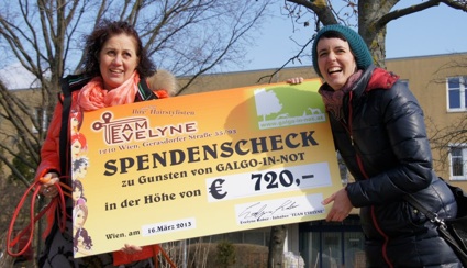 Am 17. März war es soweit, aufgeregt wie am ersten Schultag tummelten sich einige Galgo in Not Mitglieder zu einem Friseursalon. Nicht aber um sich die Haare zu stylen sondern um die Inhaberin Evelyne und ihr Team zu treffen. Der Salon „Team Evelyne – Ihre persönlichen Hairstylisten“ in der Gerasdorferstraße in Wien haben in den letzten Monaten eine Spendenbox platziert und großartige 720 Euro gesammelt. Kunden und Trinkgelder der Hairstylisten führten zu dieser grandiosen Summe. Galgo in Not bedankt sich für diese Spende, mit der wieder Galgos nach Österreich kommen können und ist entzückt von soviel Hilfsbereitschaft und Engagement. Wir ziehen unseren Hut und sagen DANKE!